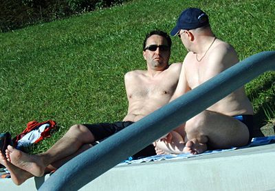 ...heute im Waldbad, Eisele und Vidagovic beim Synchronbaucheinziehen...